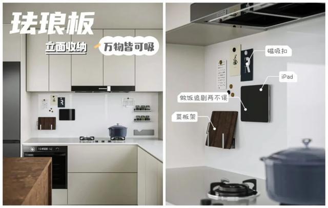 3)搪瓷板:若不喜爱不锈钢板的健康与单调,搪瓷板却是一个不错的挑选,功能和不锈钢差不多,且适配各种空间风格。